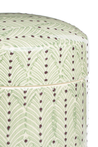 Žaismingo rašto keraminis indelis, kuriame galite laikyti ne tik maisto produktus, bet įvairias smulkmenas vonios kambaryje.