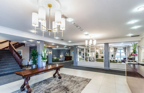 Modernaus dizaino pakabinamas šviestuvas Arizona su šešiais cilindro formos tekstiliniais gaubtais ir žalvarinėmis detalėmis. Laidas sutvirtinamas žalvario grandine. Tinka svetainėje kaip pagrindinis šviestuvas, ar restoranuose bei viešose erdvėse.