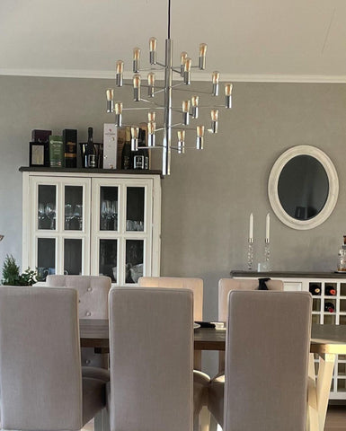 Išskirtinio dizaino pakabinamas šviestuvas Manola sukuria nuostabią atmosferą. Šis modelis turi 12 dekoratyvių lempučių laikiklių, Nepriklausomai nuo kitų Manola modelių dydžio, tai bene vienintelis šviestuvas, kurio jums prireiks, kuriant svajonių interjerą.