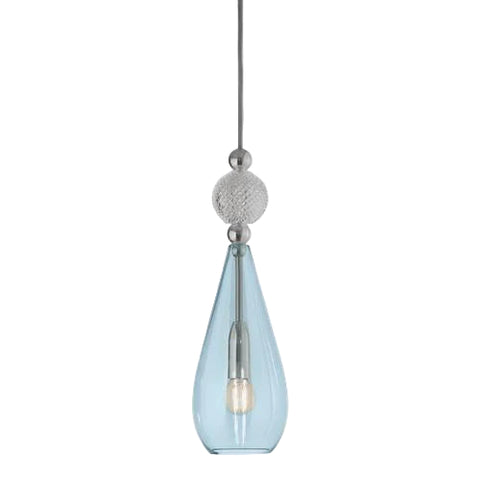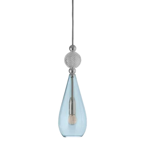 Spalva: šviesi mėlyna, skaidrus krištolo burbulas, metalinės detalės ir laidas sidabro spalvos
