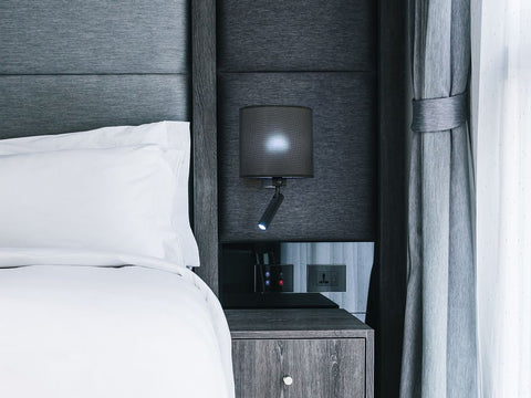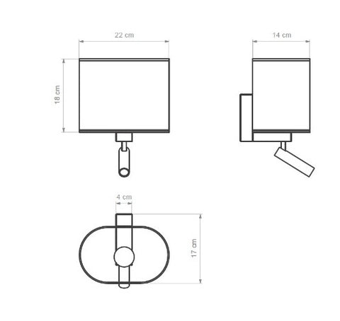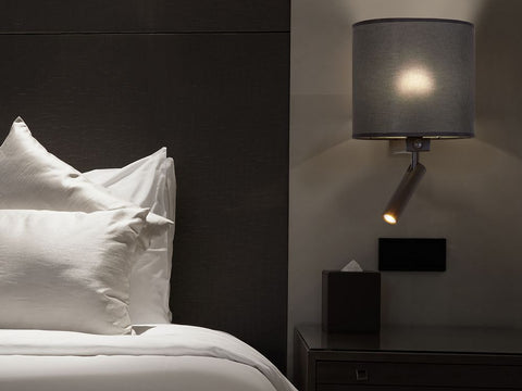 Sieninis šviestuvas su ovalo formos tektliniu gaubtu bei šviesos šaltiniu, skirtu knygoms skaityti. Puikiai tinka ne tik miegamuosiuose, bet ir viešbučio kambariuose.
