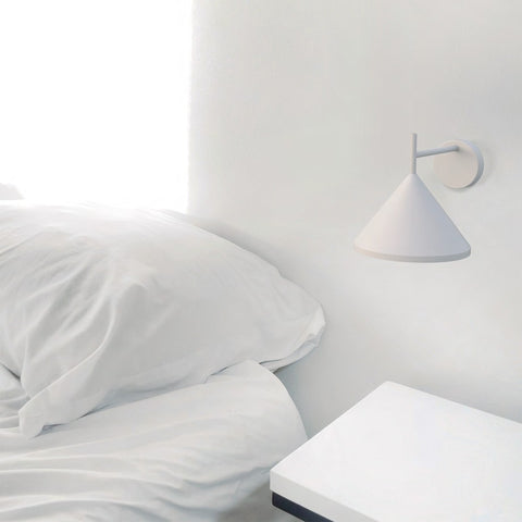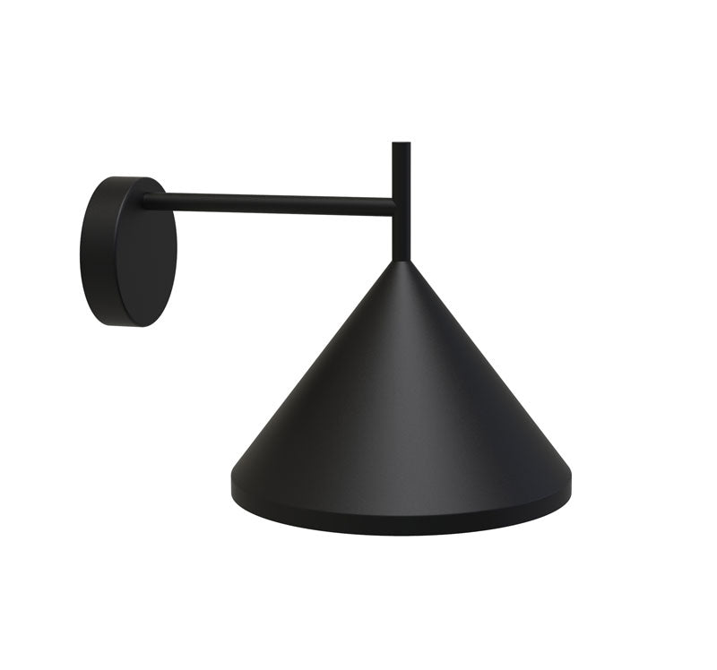 Sieninis šviestuvas su klasikiniu kūgio formos metaliniu gaubtu. Yra juodos ir baltos spalvos.